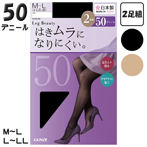グンゼ レッグビューティ タイツ 2足組 50デニール シアータイツ M-L/L-LL | つま先切替なし ナイロン レディース インナー WG250 GUNZE LegBeauty