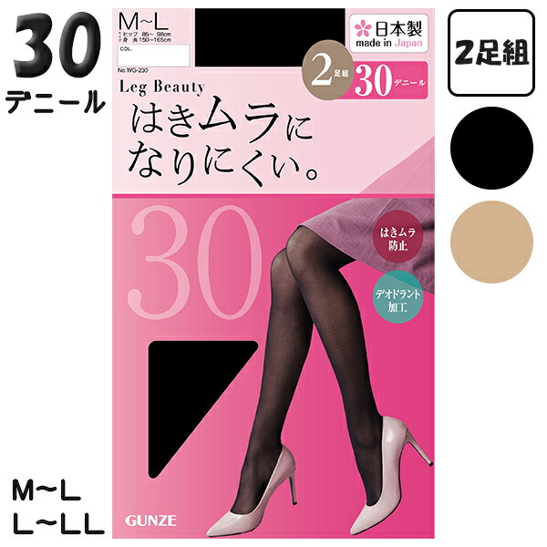 グンゼ レッグビューティ タイツ 2足組 30デニール シアータイツ M-L/L-LL | つま先切替なし ナイロン レディース インナー WG230 GUNZE LegBeauty