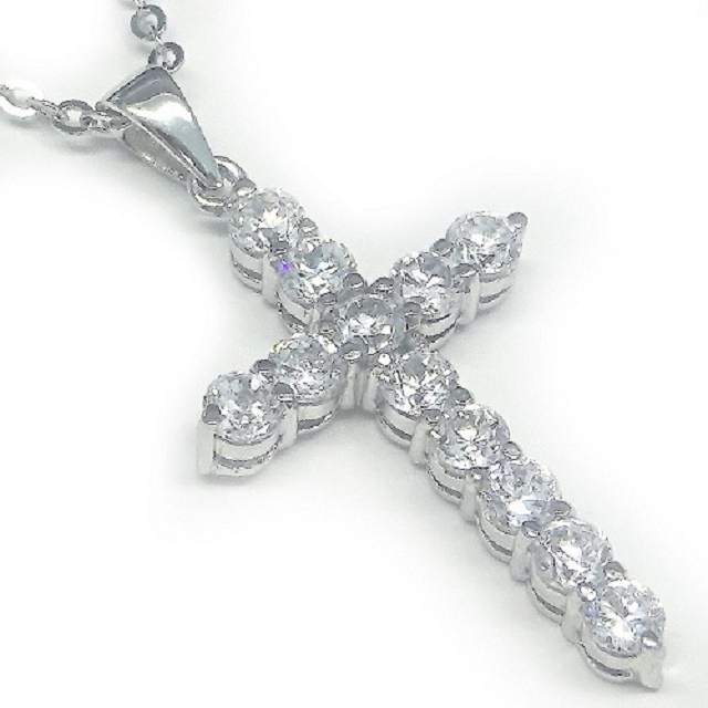 シルバーキュービックジルコニア・ペンダント・ネックレス・クロス 2カラットN0013 【ギフトラッピング済み】