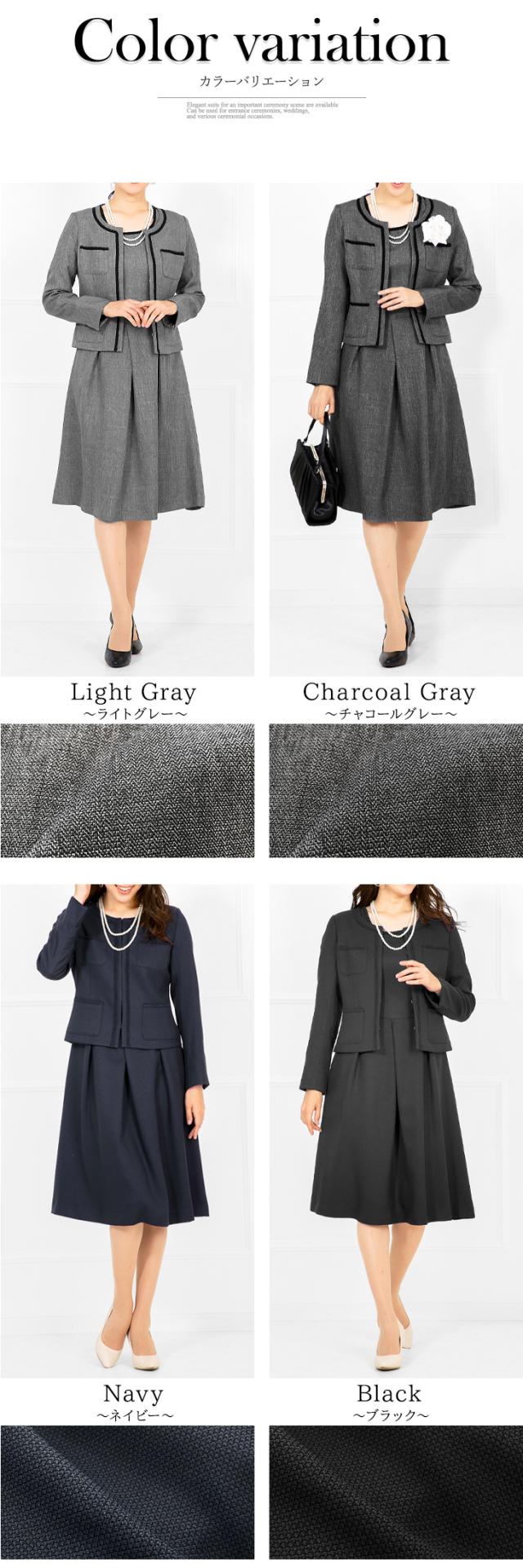 ネイビー(紺色)・ブラック(黒)・ライトグレー(薄鼠色)・チャコールグレー(灰色) |