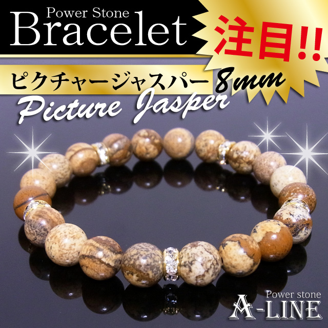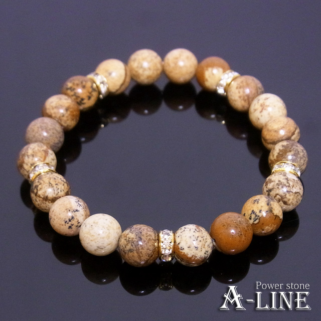 パワーストーン ブレスレット 勝負運のお守りに ピクチャージャスパー・キラキラロンデル8mm PW-3198