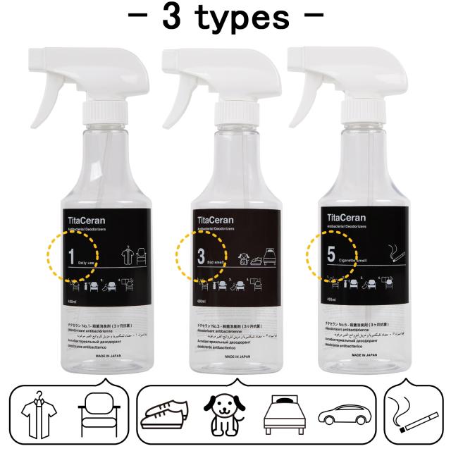 消臭 消臭剤 光触媒 消臭スプレー 部屋 玄関 靴下 靴 タバコ臭 煙草 たばこ タバコ 冷蔵庫 キッチン 台所 トイレ 便所 便器ゴミ箱 ゴミ袋 車 ペット におい 臭い 匂い 無香 消臭力 除菌 除菌剤 抗菌防臭 抗菌剤 チタセラン 400ml