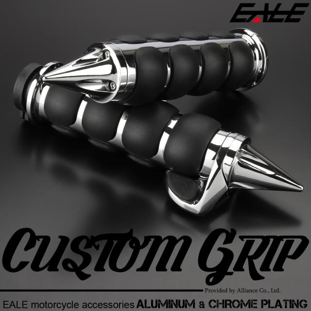 バイク グリップ 1インチ ハンドル 左右セット ハーレー アメリカン スロットルアシスト バーエンド アルミ ラバー メッキ スパイク S-580