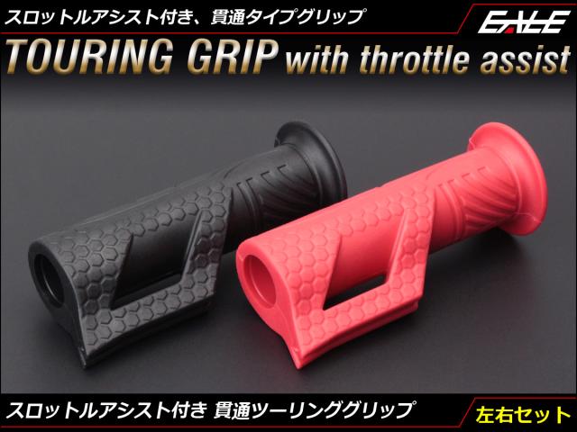 バイク グリップ 貫通タイプ ラバー スロットルアシスト付 ツーリング 22.2mmハンドル用 左右セット S-582