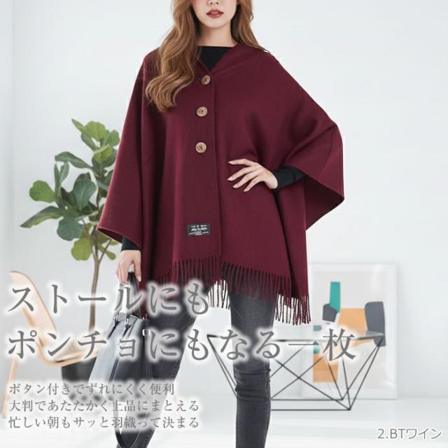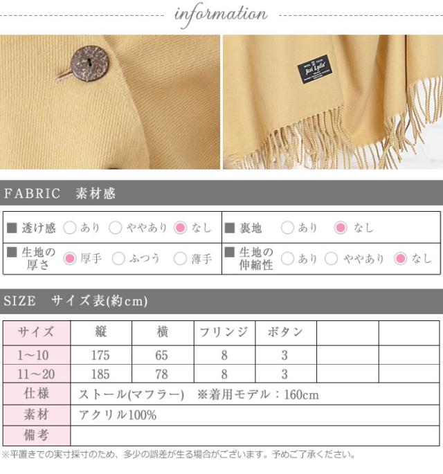 - 厚手と書いてあったので、届いたときは予想より薄い…がっかり(´-ω-`)と思いましたが、まぁいいです。 ポンチョタイプではない巻き方の時も、ボタンが役に立ってほどけにくいので何度も巻き直す手間がないです。