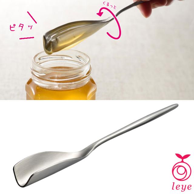 ハチミツをたっぷりすくえて、スプーンをくるりと回すだけでピタッとすっきり切れます。 たっぷりすくえるようにこだわりのV字の角度と大きさ。V字で縦に長いので1回でたっぷりすくえます。ティースプーン約5gに対して、約19gの大容量をすくえます。 |