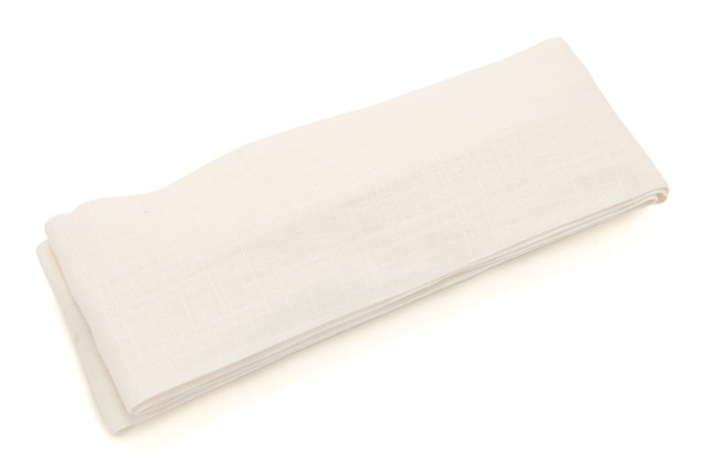 胸元に食い込まない幅広の麻生地紐で帯結びが安定します。