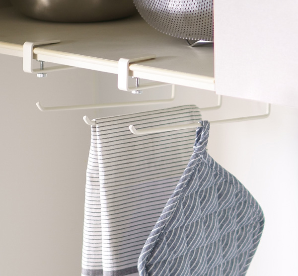 ●家事にかかせない布巾・タオルを調理スペースの上に置いておけるから家事の時短にもつながります。