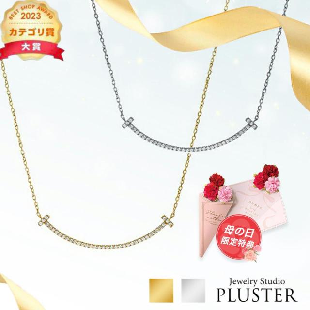 【TVやSNSでも話題 Tスマイルネックレス】緩やかなカーブが美しいスマイルラインネックレスは、カジュアルな装いからパーティーシーンまで幅広く活躍してくれます。【H&C(ハート&キューピッド)キュービックジルコニアを使用】H&C(ハート&キューピッド)は完璧なカットの証です。ダイヤモンドに匹敵する輝きは他にはない特別な贈り物にも。【金属アレルギー対応】金属アレルギーを起こしやすいニッケル・コバルト・スズ等の素材を一切使用しておりません。アレルギーをお持ちの方でもご使用頂けます。※個人差がございますので全ての方に適合する物ではございません。【無料ギフト包装】プロポーズ・誕生日プレゼント・結婚のお祝いや記念日に、またバレンタインのお返し・母の日・出産後のプレゼント・お嬢様への卒業式や入学式のお祝いなどのプレゼントとしても人気の商品です。送料無料でお届けいたします。