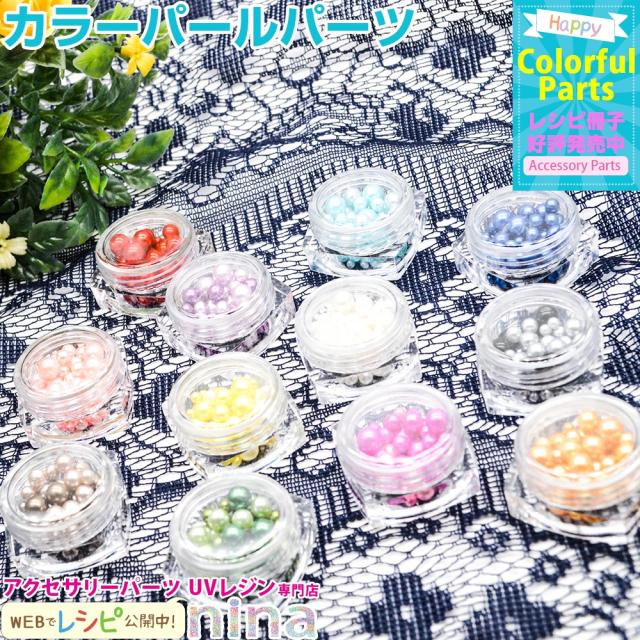 カラーパール 12色2 カラーパール パーツ 材料 カラーパール ノンホール レジンパーツ ミックス グラデーションパール レジン液 封入 デコ 手作り 穴なし 素材