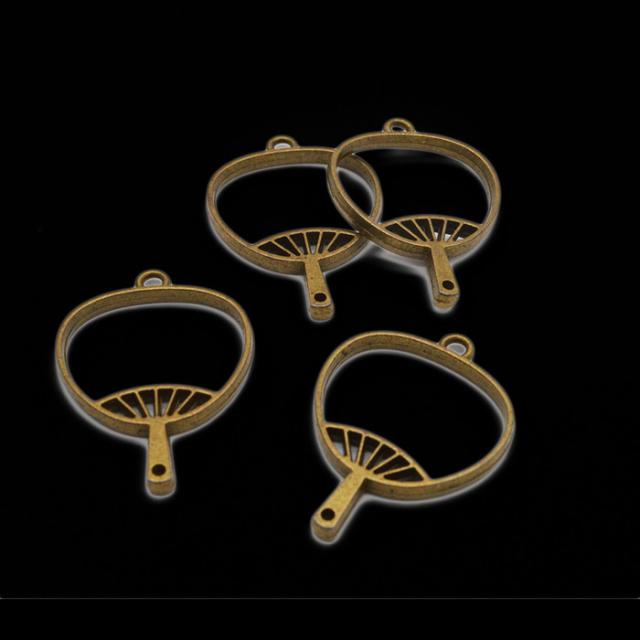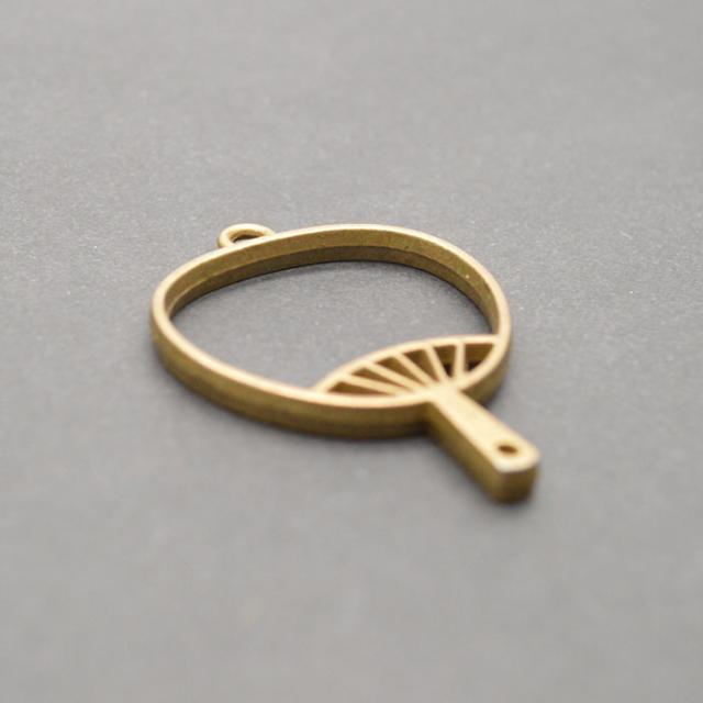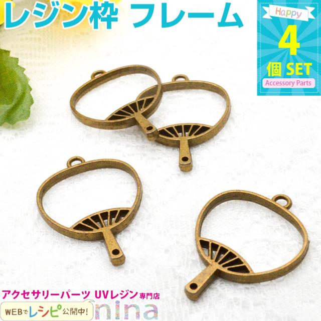 レジン枠 うちわ 4個セット | うちわ型おしゃれレジン枠でアクセサリーを! / レジン枠 レジン型 レジン空枠 レジンパーツ カン付き 手作り レジン UVレジン ペンダント パーツ ネックレス うちわ 金古美 ハンドメイド 手芸