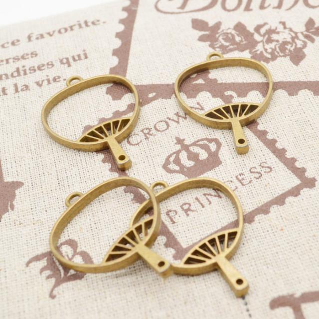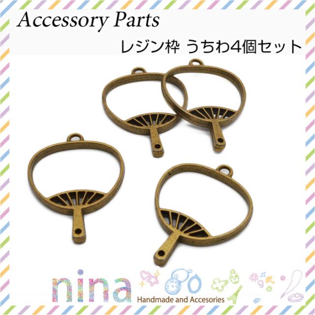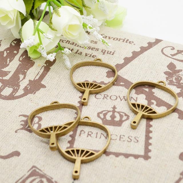 レジン枠 うちわ 4個セット レジン枠 レジンパーツ 手作り レジン枠 うちわ レジン型 パーツ レジン空枠 ハンドメイド ネックレス カン付き 手芸 金古美 ペンダント