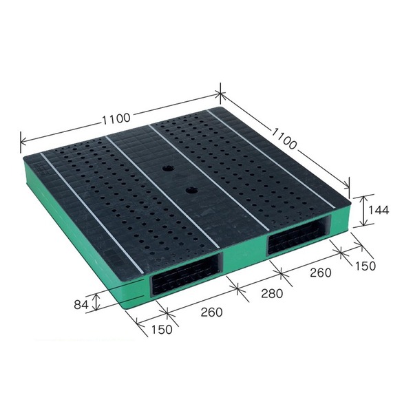 ●大型商品のため、複数購入時は追加送料がかかる場合がございます。 品名 HB-R2・1111SC ブラック/グリーン 外寸 1100 × 1100 × 144 mm 仕様 両面使用、二方差し、自動倉庫対応 重量 24 kg 入数 1 材質 再生PP カラ— ブラック/グリーン 積載荷重 動荷重:1,000kg 静荷重:4,000kg