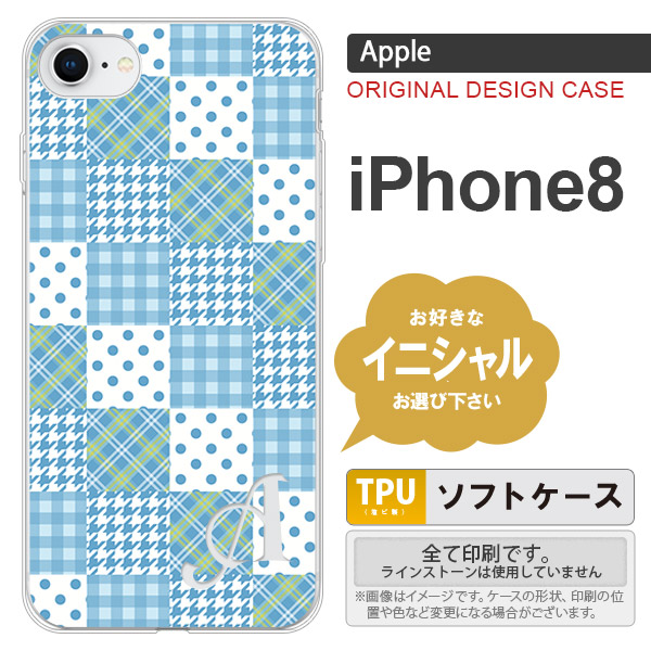 iPhone8 スマホケース ケース アイフォン8 イニシャル パッチワーク風 水色 nk-ip8-tp1064ini