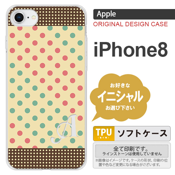 iPhone8 スマホケース ケース アイフォン8 イニシャル ドット・水玉 ベージュ×ミント nk-ip8-tp1647ini