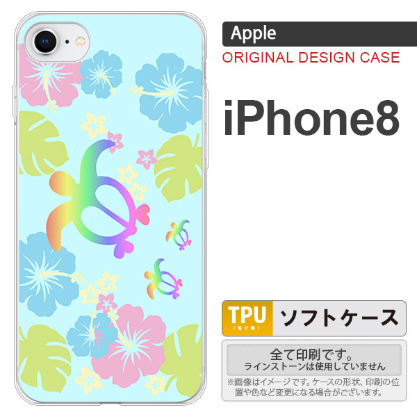 iPhone8 スマホケース カバー アイフォン8 亀とハイビスカス 水色 nk-ip8-tp684