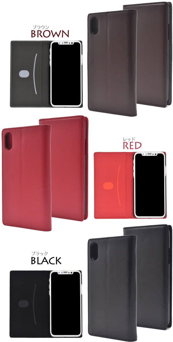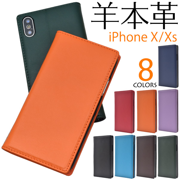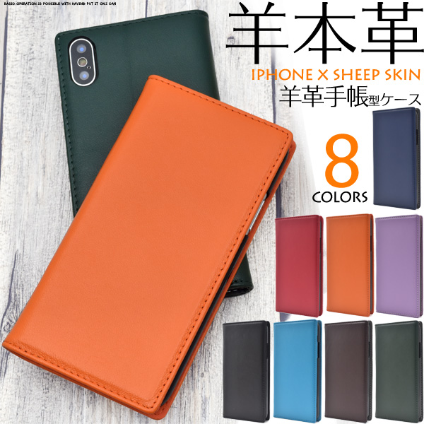iPhoneX iPhoneXS用 手触りのいい シープスキンレザー 手帳型 ケースポーチ 羊本革 シンプル アイフォンX