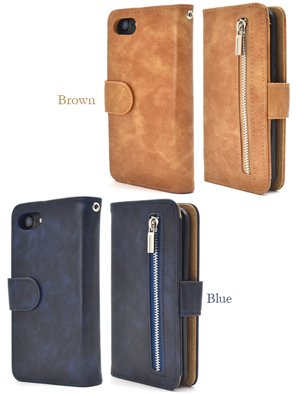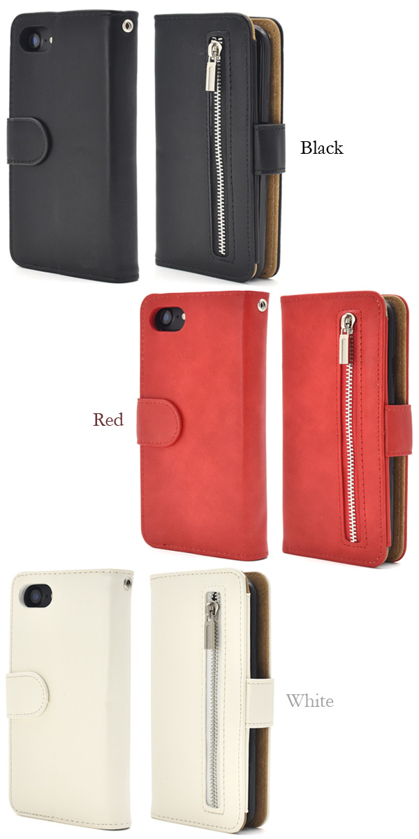 手帳型 iPhone7 iPhone6 iPhone6s用 ファスナー&ポケット レザーケース 保護カバー シンプル カジュアル SoftBank au docomo