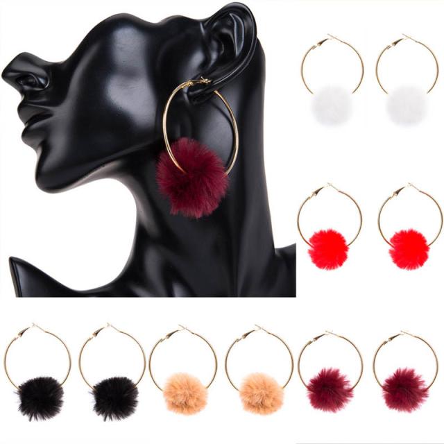大きめの金メッキされたシンプルなリングピアスに冬の人気ファーをセットしたっモコモコのリングピアス。