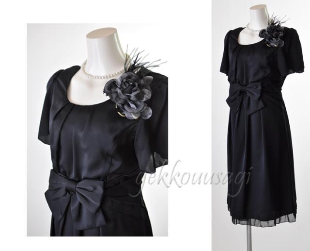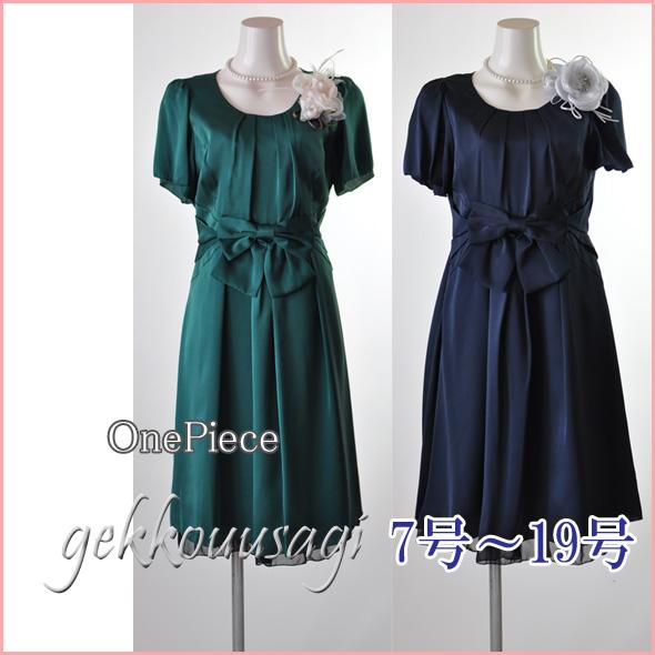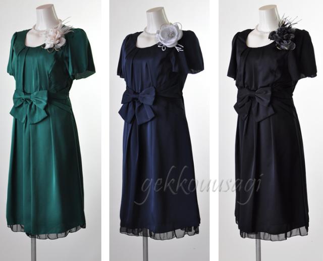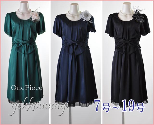 ワンピース フォーマル 謝恩会 披露宴 きれいめ 体型カバー 選べる3色 小さいサイズ 7号 9号 11号 13号 15号 大きめリボン 可愛い 結婚式 親族 フォーマルドレス 50代 サテンドレス フォーマルワンピース Aライン フレア 6244005