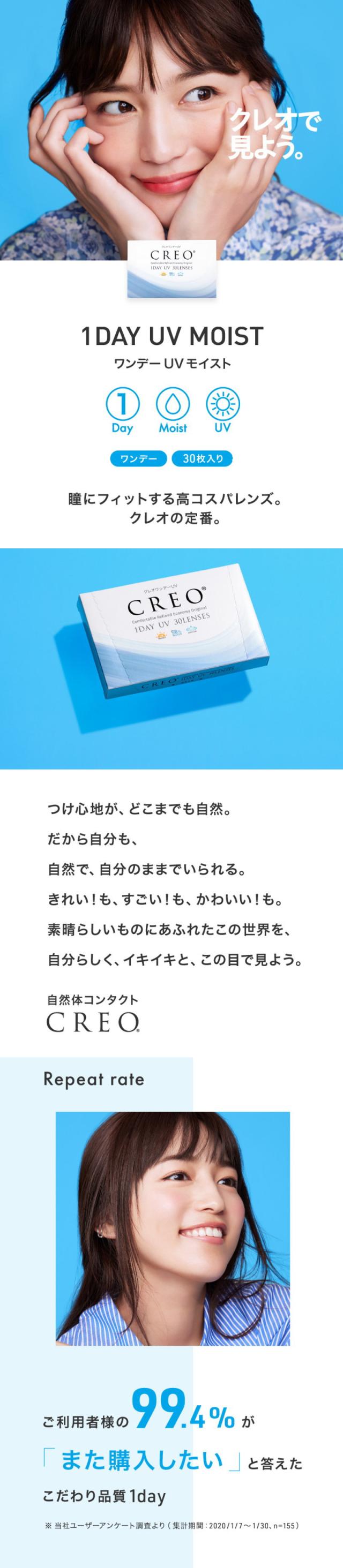 (4箱)クレオワンデー UV モイスト 1箱30枚 ワンデー コンタクトレンズ 瞳にフィットしやすいエッジ big_bc