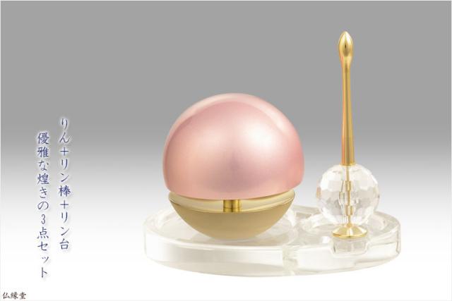 おりん・仏具【たまゆらりん・クリスタル台セット:淡桃色 リン+リン台+リン棒】仏壇 磬 鐘 鈴 送料無料