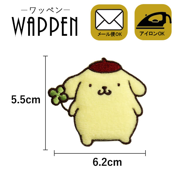 サンリオ ポムポムプリン ワッペン キャラクター 刺繍ワッペン アイロン接着 縦5.5cm×横6.2cm 正規品 母の日 プレゼント ギフト