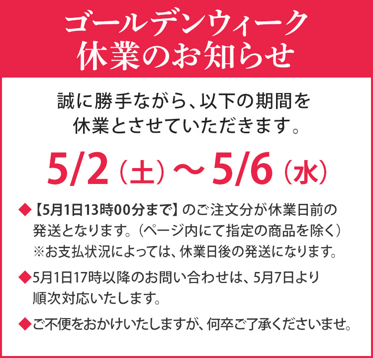 | 送料 | 送料無料 ※北海道・沖縄は送料別途1,000円(税込)必要となります。 |