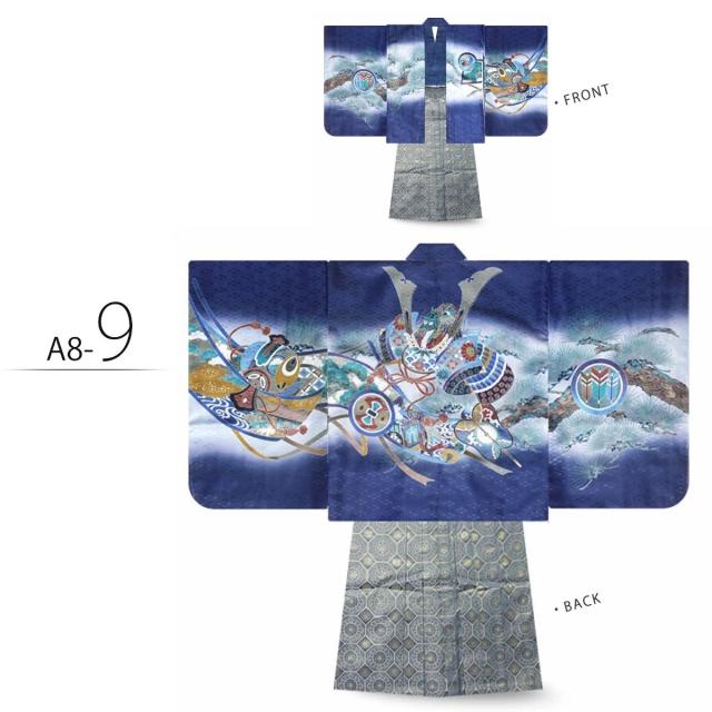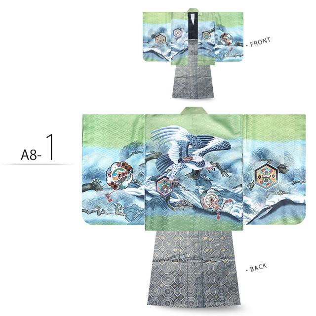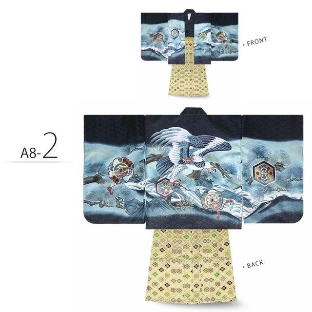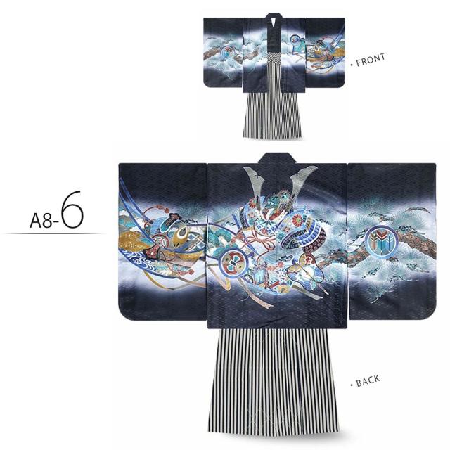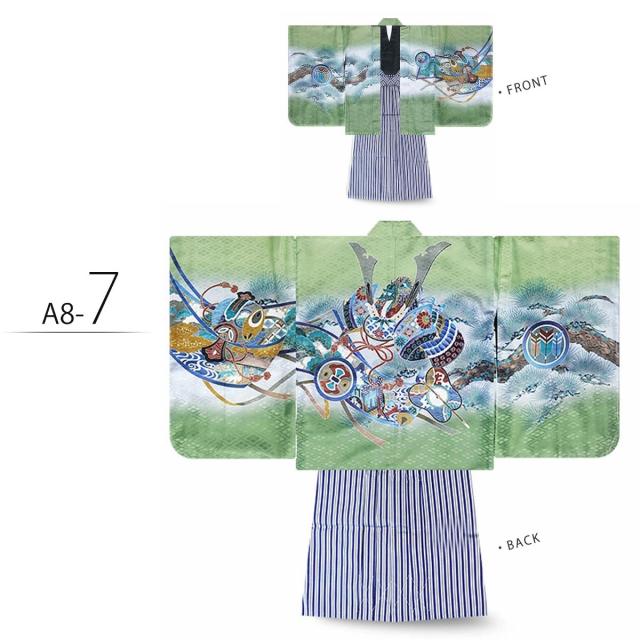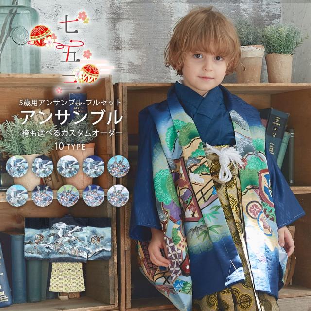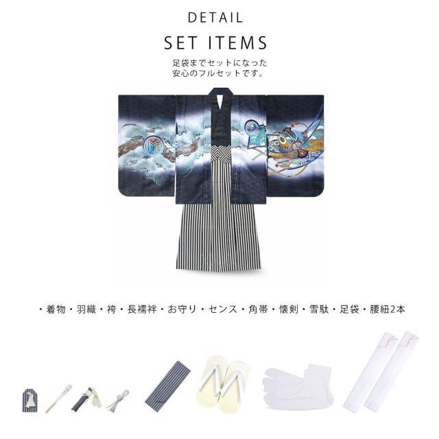 七五三 5歳 男児 着物 羽織袴 アンサンブル 豪華14点フルセット選べる10柄 鷹 甲 タカ カブト 古典 柄【5才 五歳 五才 七五三 男の子】【黒・白・緑・青】金襴袴 縞袴 購入品
