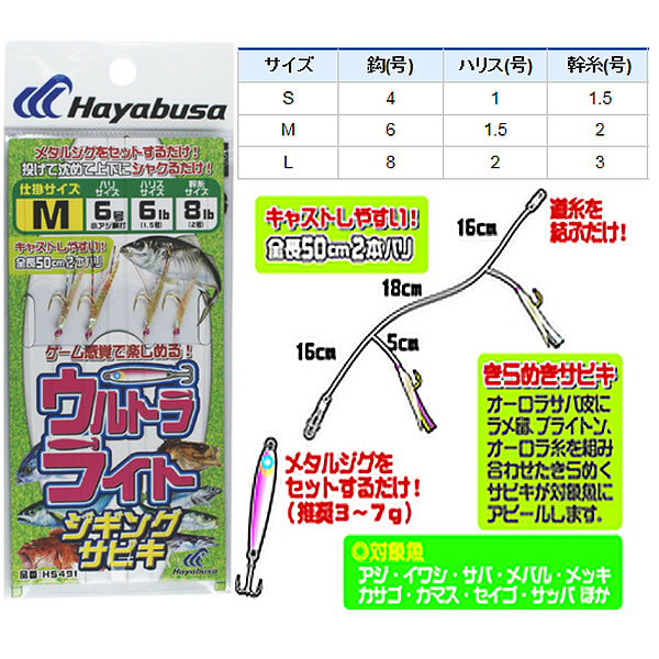 ハヤブサ 堤防ウルトラライトジギングサビキ 2本鈎2セット HS491 (サビキ仕掛け)
