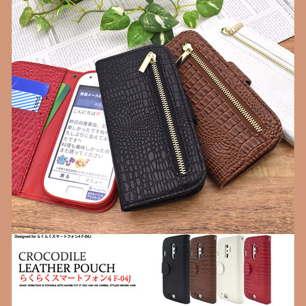 らくらくスマートフォンme F-03K、らくらくスマートフォン4 F-04J ケース 手帳型クロコダイルレザー手帳型ケース カバー スマホケース