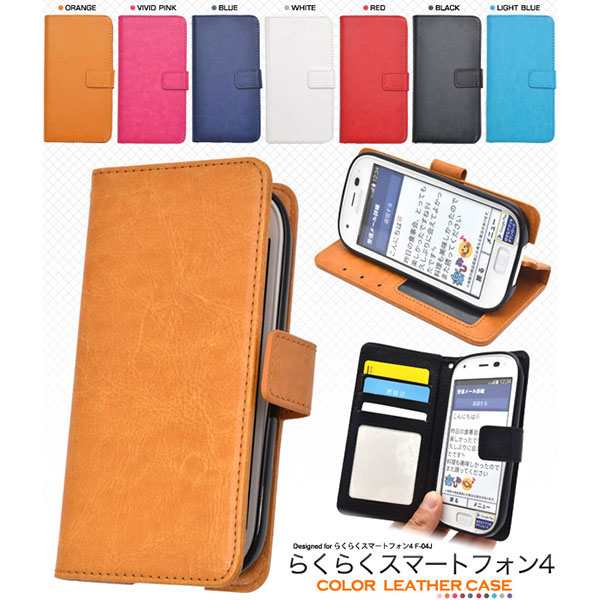 らくらくスマートフォンme F-03K、らくらくスマートフォン4 F-04J ケース 手帳型 カラーレザーケース手帳型ケース カバー スマホケース