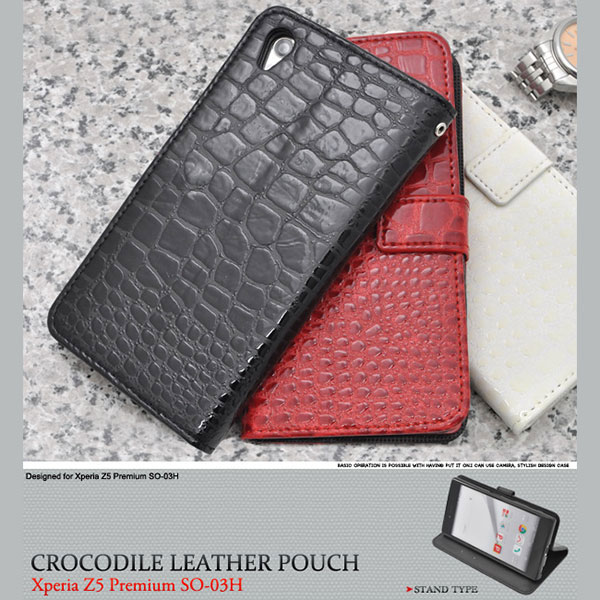Xperia Z5 Premium SO-03H ケース 手帳型 クロコダイルレザーデザインケース カバー エクスペリア z5 プレミアム スマホケース