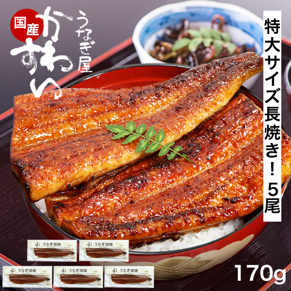 国産 うなぎ 蒲焼き 特大170g×5本 送料無料 山椒別売り 鰻 うなぎ ウナギ 御礼 御祝 お見い 贈答 結婚 出産 土用丑 母の日 父の日