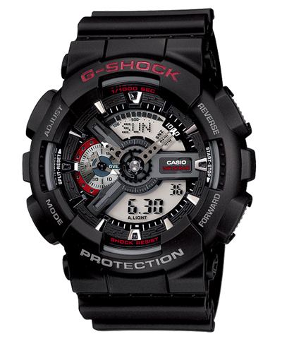 タフネスを追求するG-SHOCKから、迫力のあるビッグフェイスが特徴のGA-110シリーズにNewカラーモデルが登場。 G-SHOCKらしくブラックをメインカラーに採用し、より力強さを表現しました。1/1000秒ストップウオッチや速度計測機能、JIS1種の耐磁性能など実用的な機能を搭載。アナログとデジタル表示が融合した文字板に歯車状の細かなパーツを立体的に組み上げ、シルバーに輝くインデックスがフェイスデザインをよりシャープに際立たせています 最新テクノロジーを搭載し進化を続けるG-SHOCKの、実用的でクールなNewモデルです。 ・ 1/1000秒計測ストップウオッチ ・ 速度計測機能 ・ JIS1種耐磁性能 . |