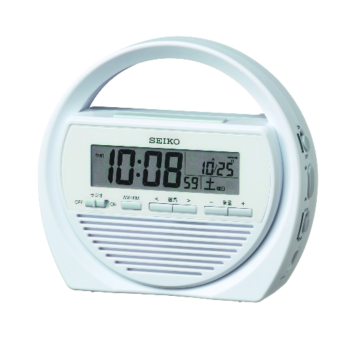 SEIKO CLOCK セイコー クロック 目覚まし時計 防災クロック SQ764W 電波 デジタル 手回し充電 ラジオ LED懐中電灯 非常用ブザー 携帯電話充電 白 SQ764W