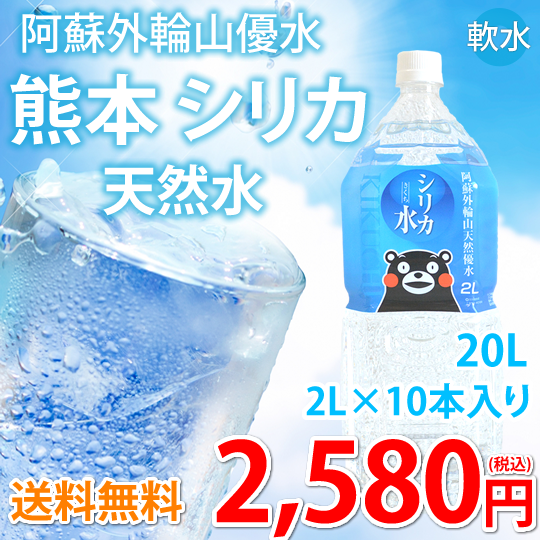 シリカ水 2L×10本 20L ミネラルウォーター 送料無料 くまもん 阿蘇外輪山天然優水 熊本シリカ天然水 シリカ 水 お取り寄せ 2リットル 美容 健康