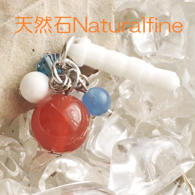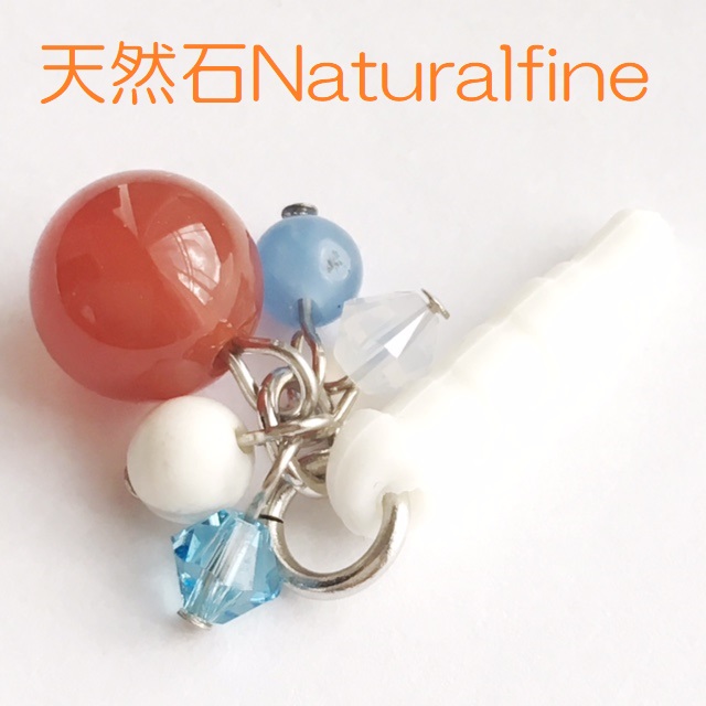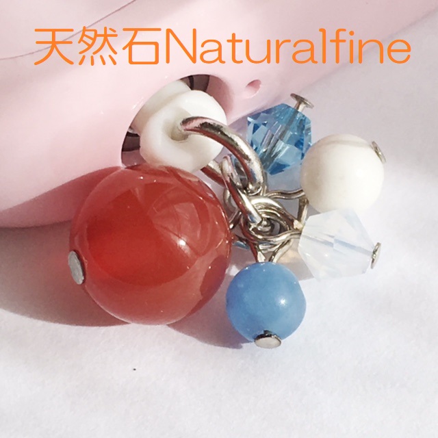 今回のスマホピアスは、天然石の赤のカーネリアンとハウライト、スワロフスキーとガラスビーズをつけました!