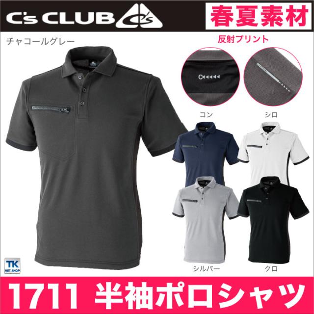 半袖ポロシャツ 作業服 作業着 作業シャツ リフレクションポロシャツ 胸ポケット付き chusan 春夏 cs-1711-b