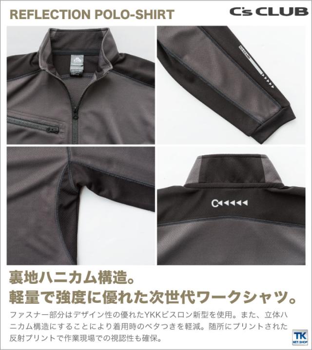長袖zipポロシャツ 作業服 作業着 作業シャツ リフレクションポロシャツ