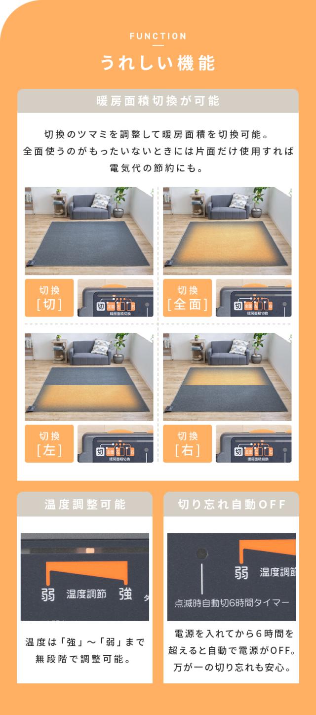 - 長年使用していたホットカーペットが壊れてしまいお手頃の値段てあったので購入したけどスイッチ部分が安っぽくてわかりにくいです。