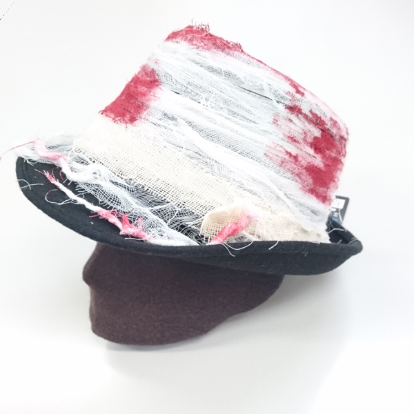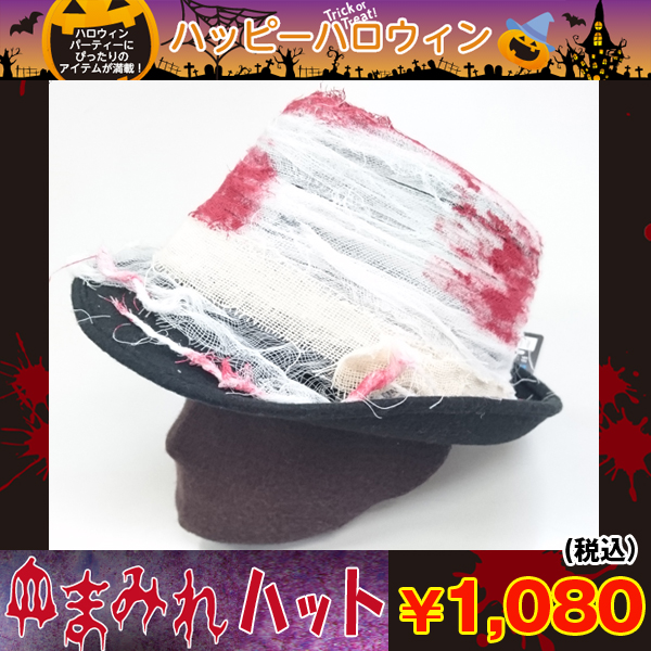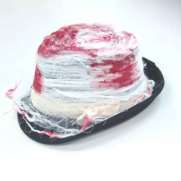 シックな黒いハットに血まみれ包帯。