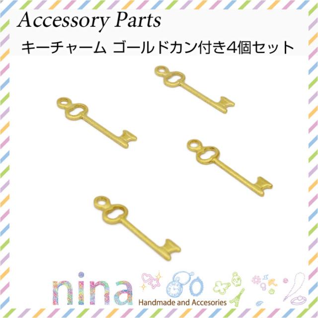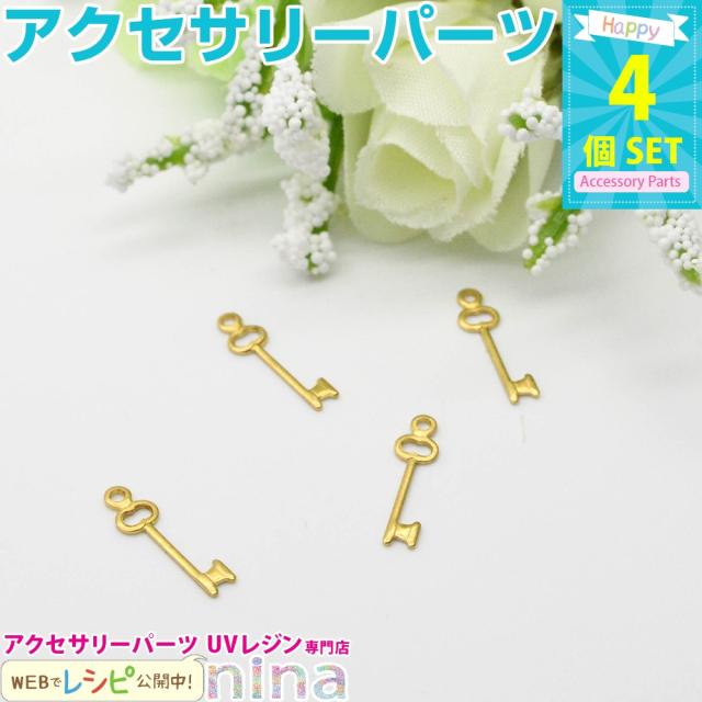 キーチャーム ゴールドカン付き 4個セット キーチャーム レジン液 パーツ キーチャーム アンティーク ゴールド 封入 デコパーツ ペンダントトップ デコ メタルパーツ レジン素材 金 キー型