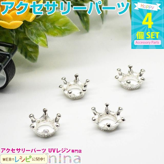 王冠チャーム クラウン ミニ シルバー 4個セット 王冠チャーム 金属 ペンダント 王冠チャーム 金具 シルバー パーツ チャーム かわいい メタルパーツ デコ ネックレス アクセサリー