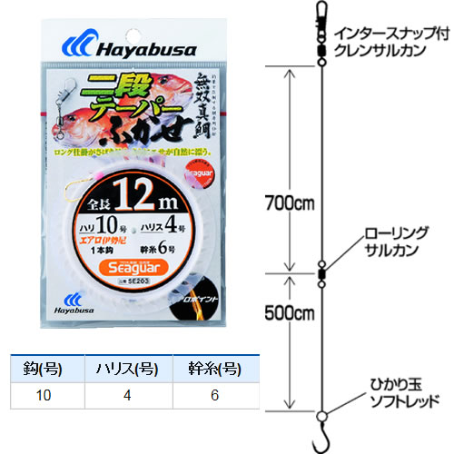 ハヤブサ 無双真鯛 二段テーパーふかせ12m 1本鈎 SE203 (船釣り 仕掛け) 10-4