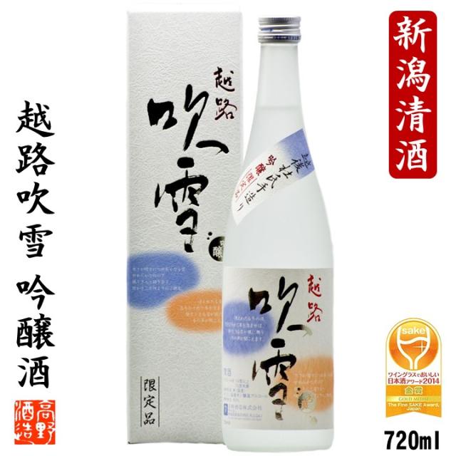 日本酒 吟醸酒 越路吹雪 720ml 新潟 高野酒造 ギフト プレゼント 日本酒 辛口 お酒 のし可 酒 地酒 清酒 ワイングラス 金賞 手土産 お土産
