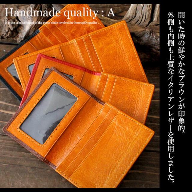 本革を使用してハンドメイドで製作した上品なカードケースです。シボの楽しめるツートンカラーのAタイプとシンプルなBタイプで異なった表情を楽しめます。名刺入れ部分は最大マチ2cmと大容量で、たくさんの名刺やカードが収納することができます。窓付きカードケースは定期や免許証収納に便利です。