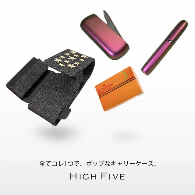 【限定300円OFFクーポン】【1,480円→1,180円】HIGH FIVE IQOS3DUO対応ケースカラビナ付き IQOS 3 DUO 対応 アイコス3 duo 対応 ケース カバー レザー 革 ヒョウ柄 迷彩 デニム ポーチ 星 スター スタッズ マグネット式 電子たばこ 本体 ヒートスティック 収納