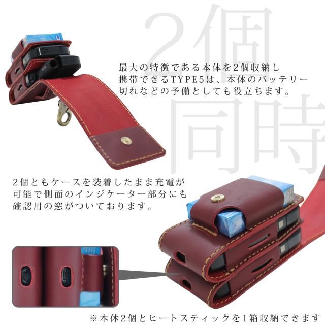 WNIQ ケース カバー シンプル 本革ケース 電子タバコ ホルダー 落下防止 革 ケース 2個持ち おしゃれ ダブル TYPE-5 【宅急便のみ】