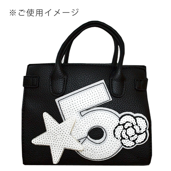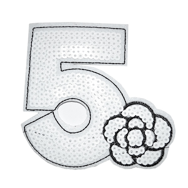 ワッペン アップリケ スパンコールワッペン アイロン接着 縦10.5cm×横11cm ホワイト 数字 5 カメリア フラワー母の日 プレゼント ギフト